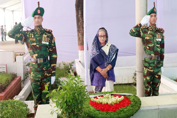 ১৫ আগস্ট নিহত স্বজনদের কবরে প্রধানমন্ত্রীর শ্রদ্ধা